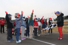 タイムトライアルでは琢磨自らチェッカーフラッグを振ってゴールで迎え子供達の健闘をたたえる