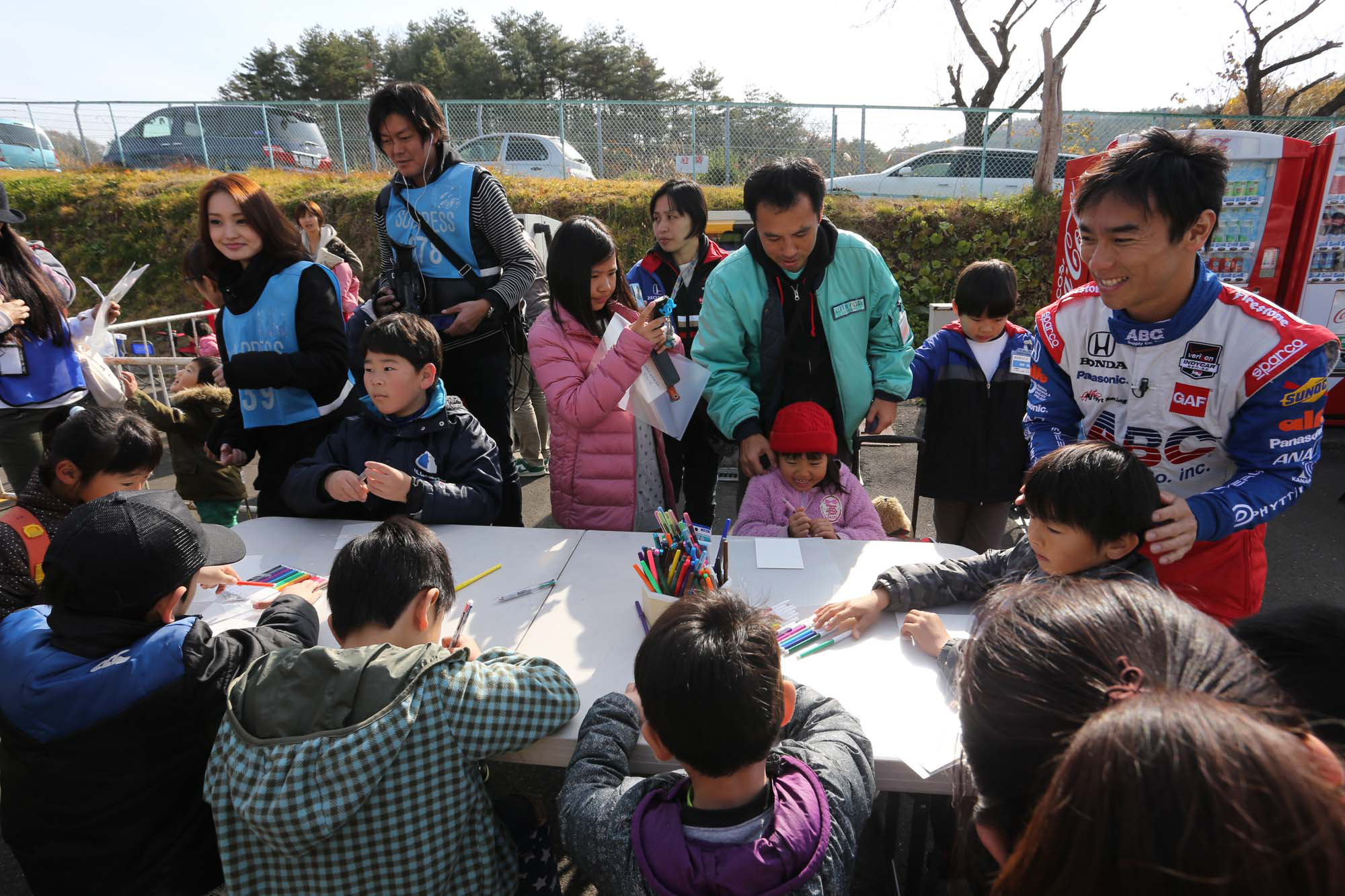 今回のWyJ TAKUMA KIDS KART CHALLENGEはSUGOのカートコースで開催。山元町の親子と琢磨ファン総勢150名での開催となった