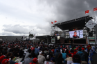 日曜の朝もやや天候不順。それでもF1のアイテムを身にまとってステージに集まってくれた。中にはBAR時代のウエアや現在のABCのアイテムも見える