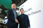 永易社長とガッチリ握手をして今年のインディ500健闘を誓う