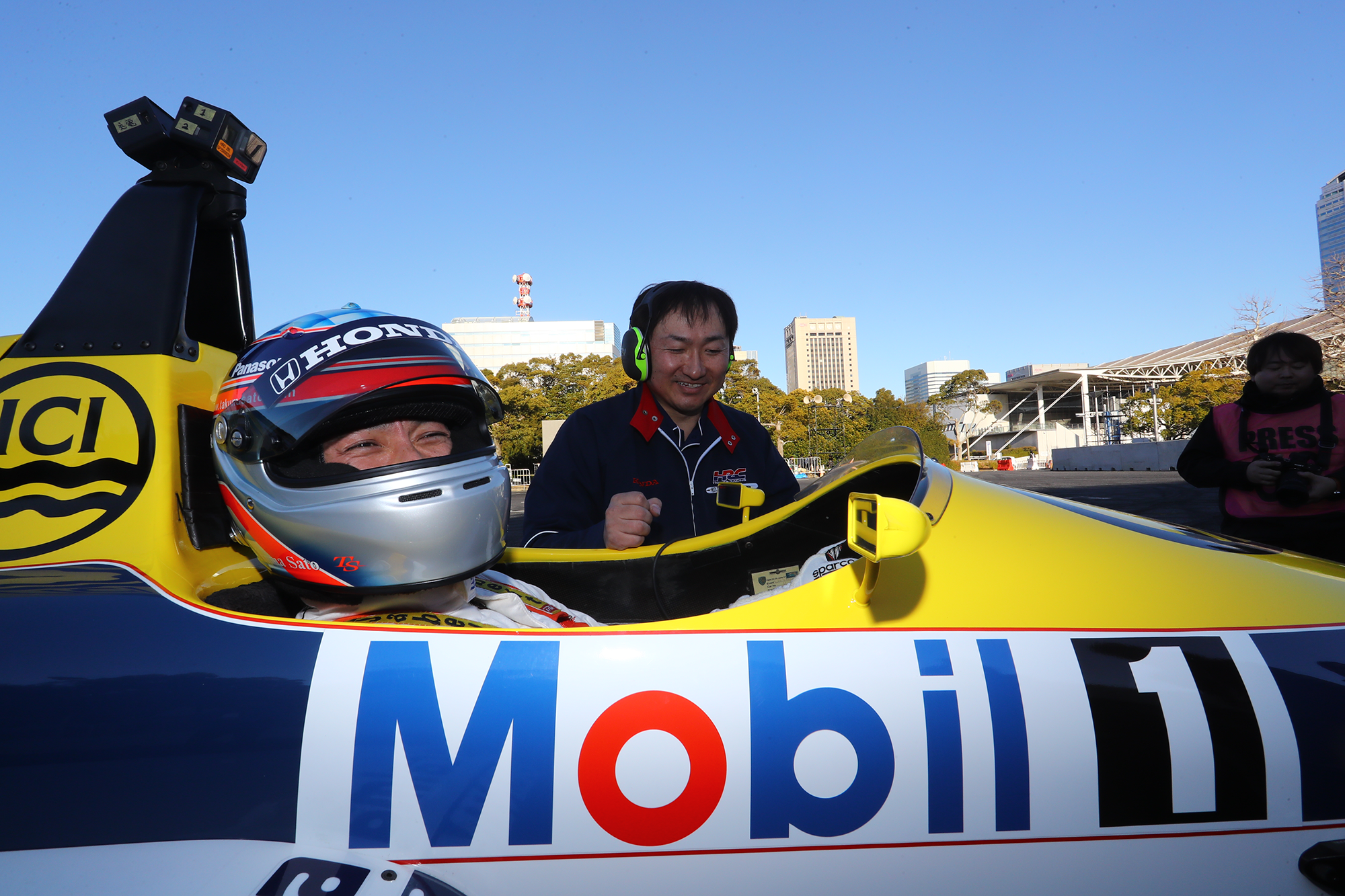 マクラーレンMP4/6のコクピットに座ってホンダエンジンの咆哮を幕張メッセに響かせる