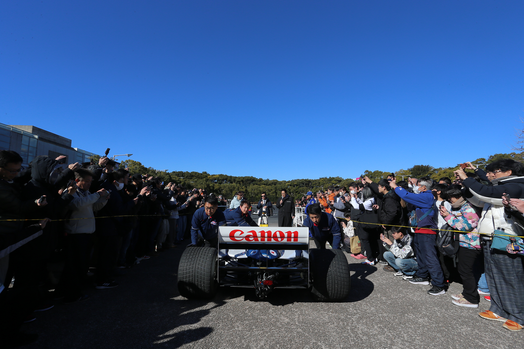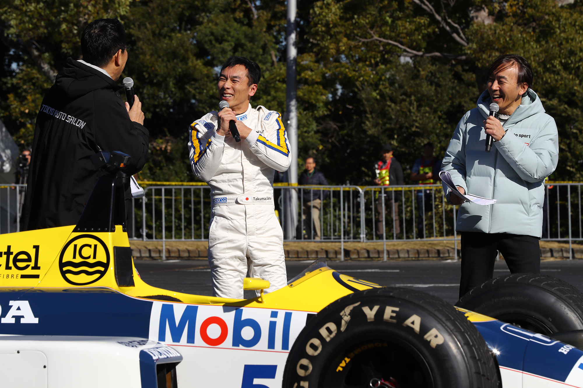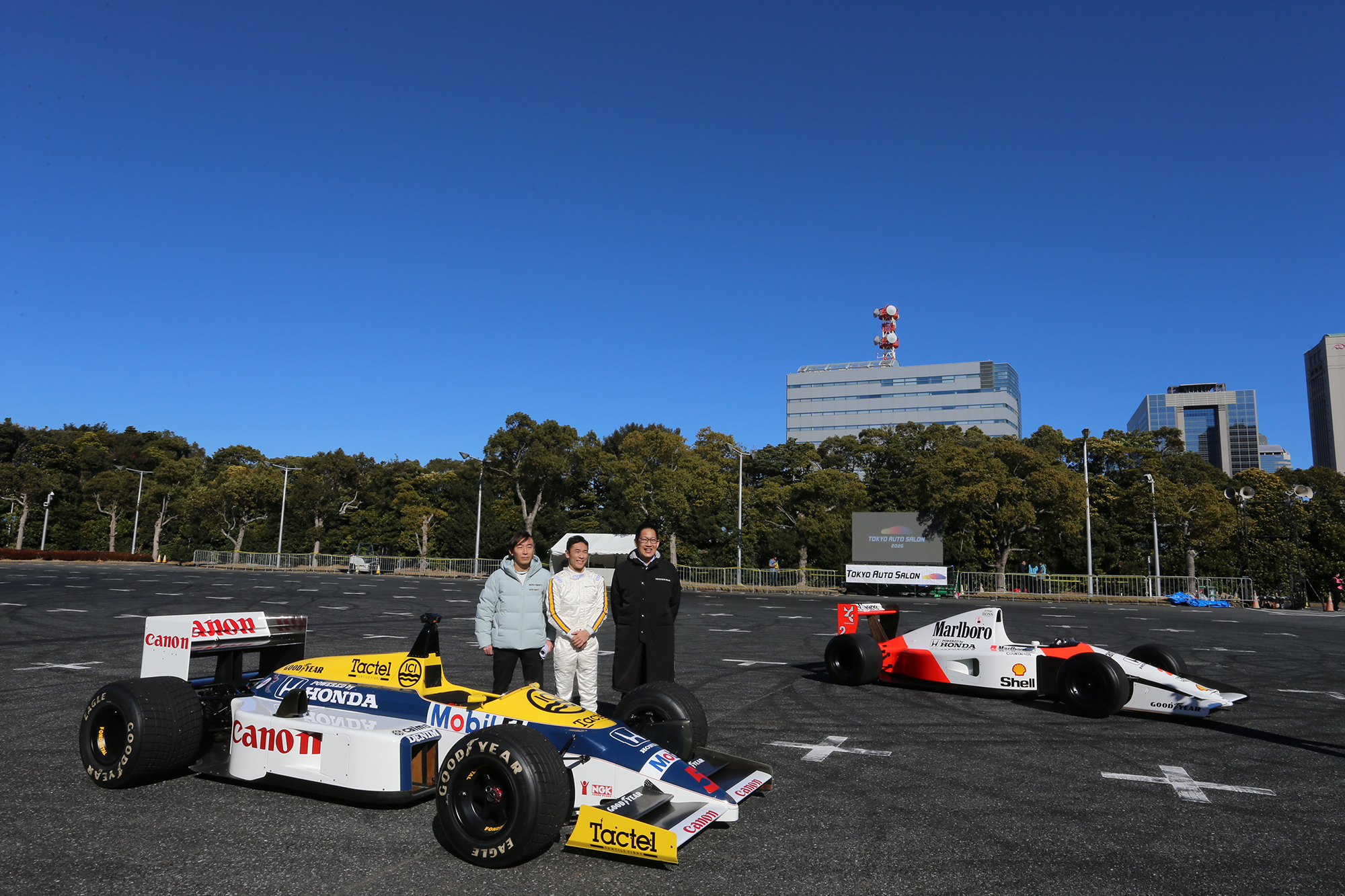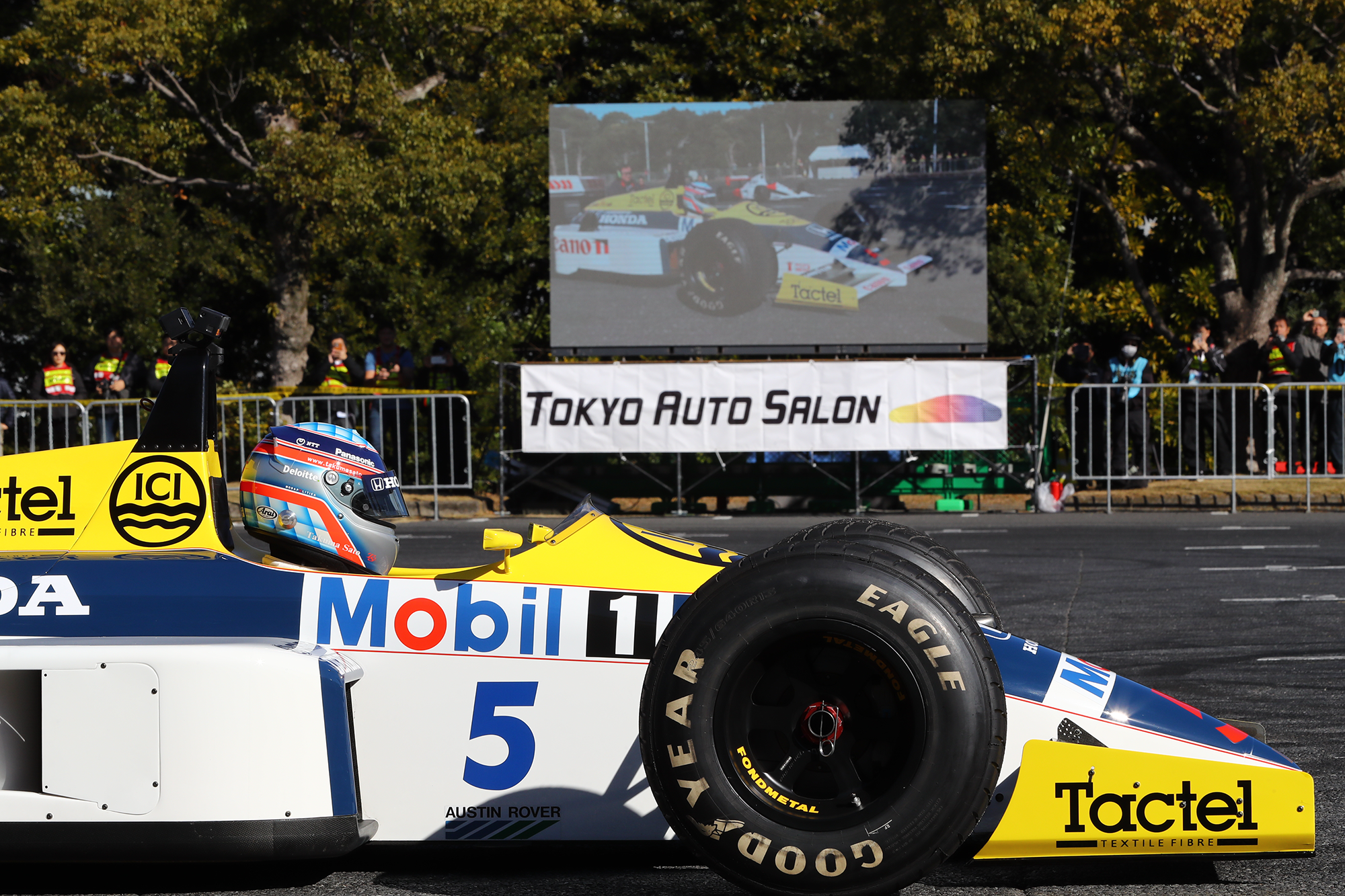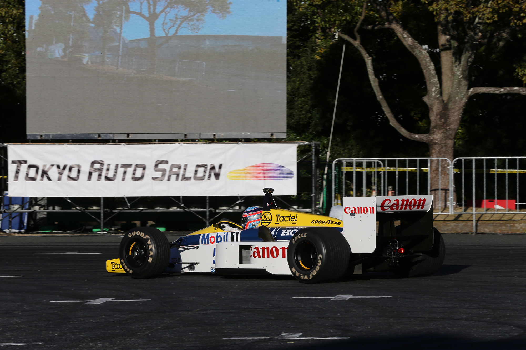 東京オートサロンでは昨年のホンダRA272に引き続き、今年はウイリアムズFW11をデモランでドライブすることに
